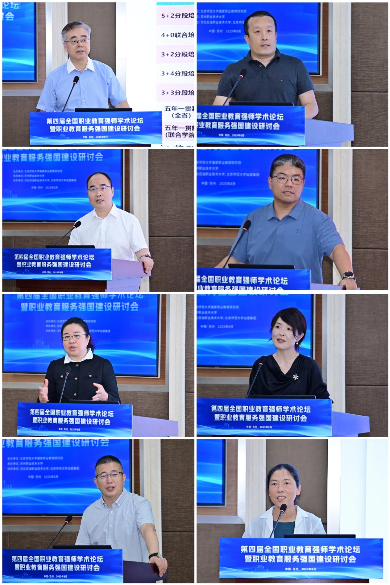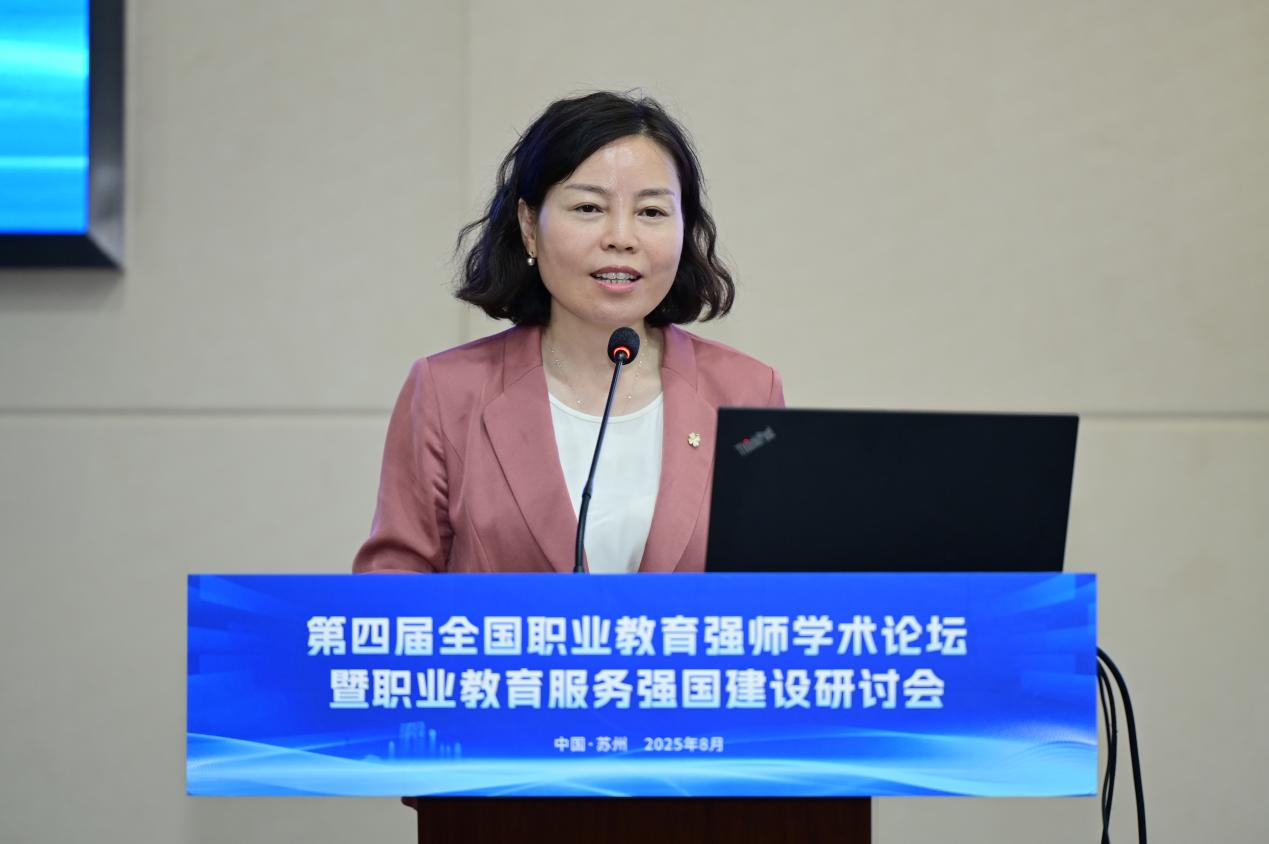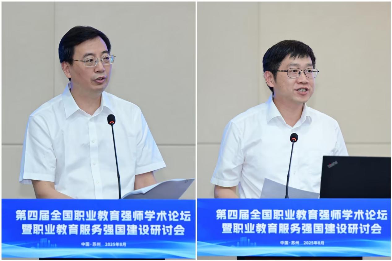 8月16日至17日,第四届全国职业教育强师学术论坛暨职业教育服务强国建设研讨会在苏州职业技术大学举行。本次论坛由北京师范大学国家职业教育研究院主办,苏州职业技术大学承办,河北石油职业技术大学、北京师范大学出版集团协办,苏州吴中经济技术开发区机器人与智能制造产教联合体、全国先进半导体行业产教融合共同体、全国数字低空行业产教融合共同体给予大力支持,并获得全国教育专业学位研究生教育指导委员会职业技术教育领域专家小组指导。苏州市人民政府副秘书长吴旭翔、苏州市委教育工委书记、市教育局局长周志芳、北京师范大学国家职业教育研究院院长和震、国家教育行政学院职业教育研究中心主任邢晖、天津职业技术师范大学原党委书记孟庆国、江苏联合职业技术学院原党委书记刘克勇、浙江金融职业学院原党委书记周建松、南宁师范大学二级教授王屹、教育部职业教育发展中心教师处副处长涂三广、苏州市职业大学党委书记温贻芳、武汉城市职业学院二级教授禹诚等出席论坛。开幕式由和震主持、主旨报告由苏州市职业大学校长陈峻主持。